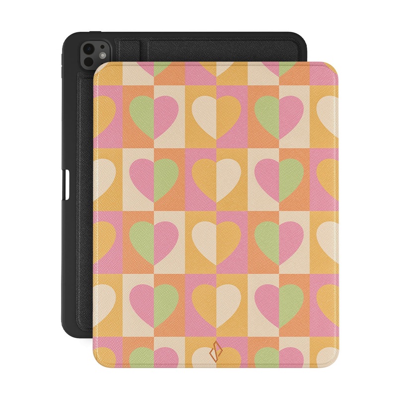 Beautifully geometrical and lovable Summer Love {iPad Model} iPad Pro 13 (7th Gen) folio case combines a soft pastel color scheme with a playful square heart pattern. Adding a touch of love to your style was never easier! Keep your iPad as safe as you keep your heart in a cheeky checkered protective iPad case!